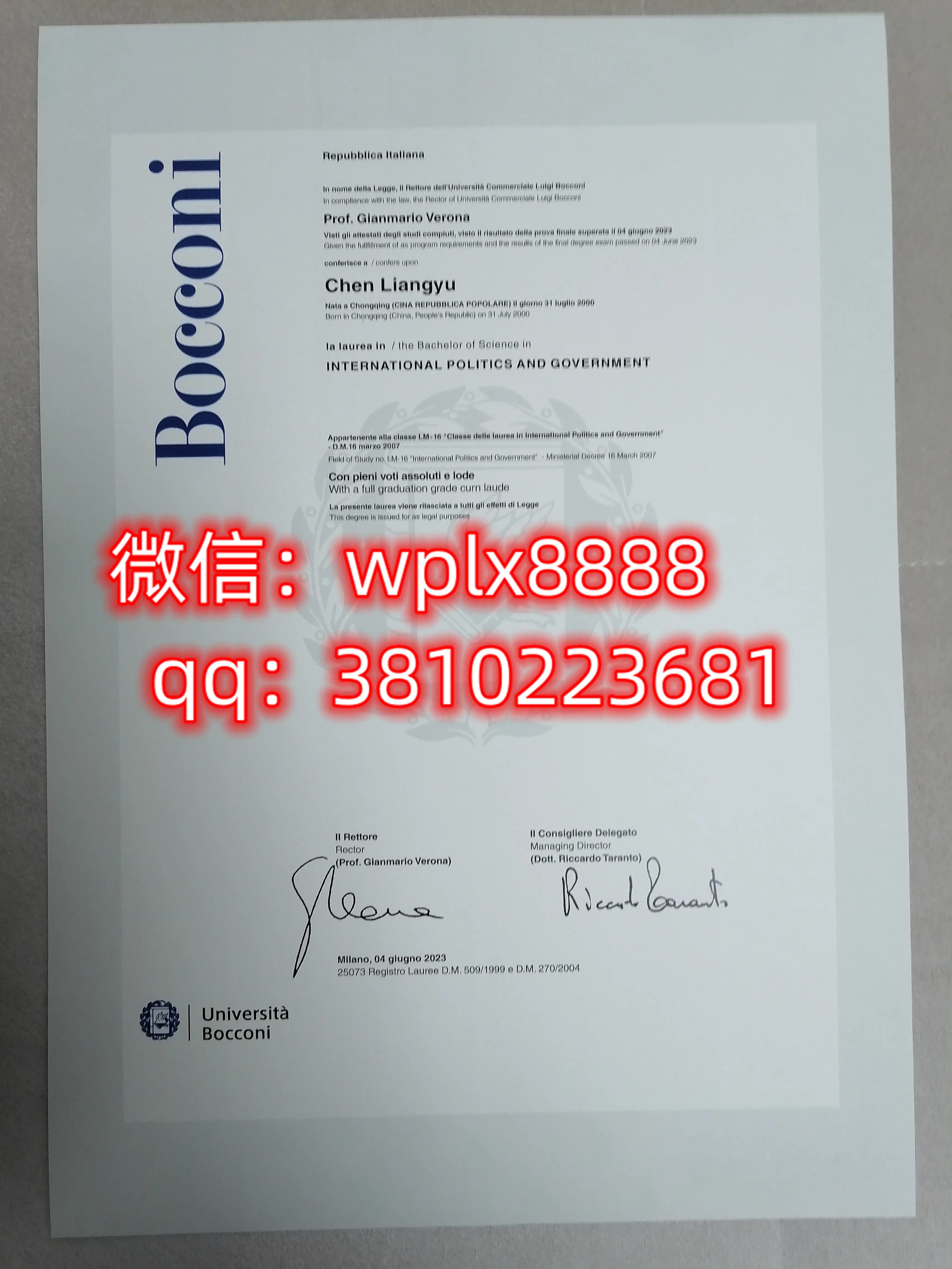 如果您对博科尼大学的毕业证和成绩单定制或认证服务感兴趣,欢迎联系我们,我们将为您提供一对一的专业咨询和定制服务。